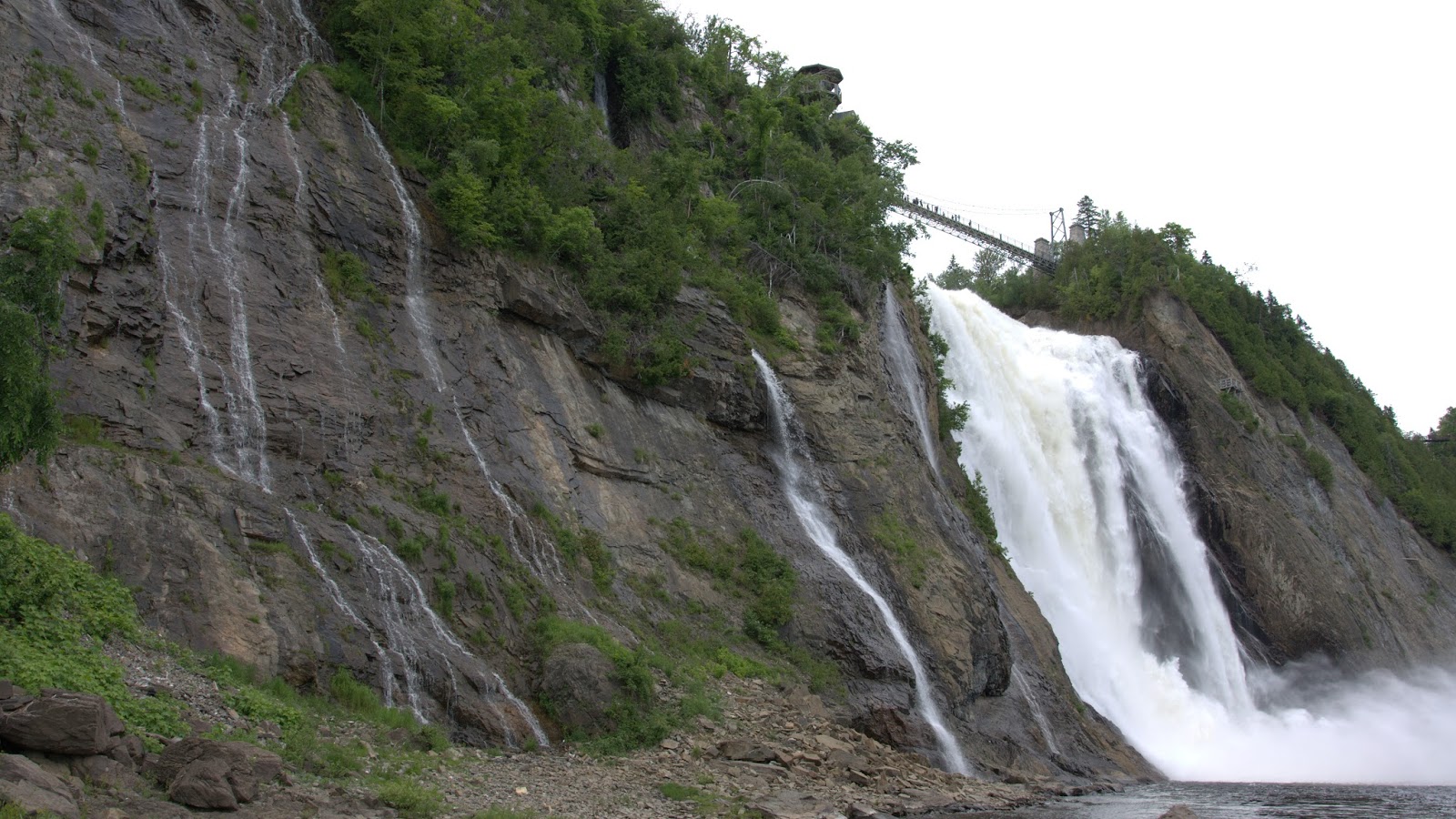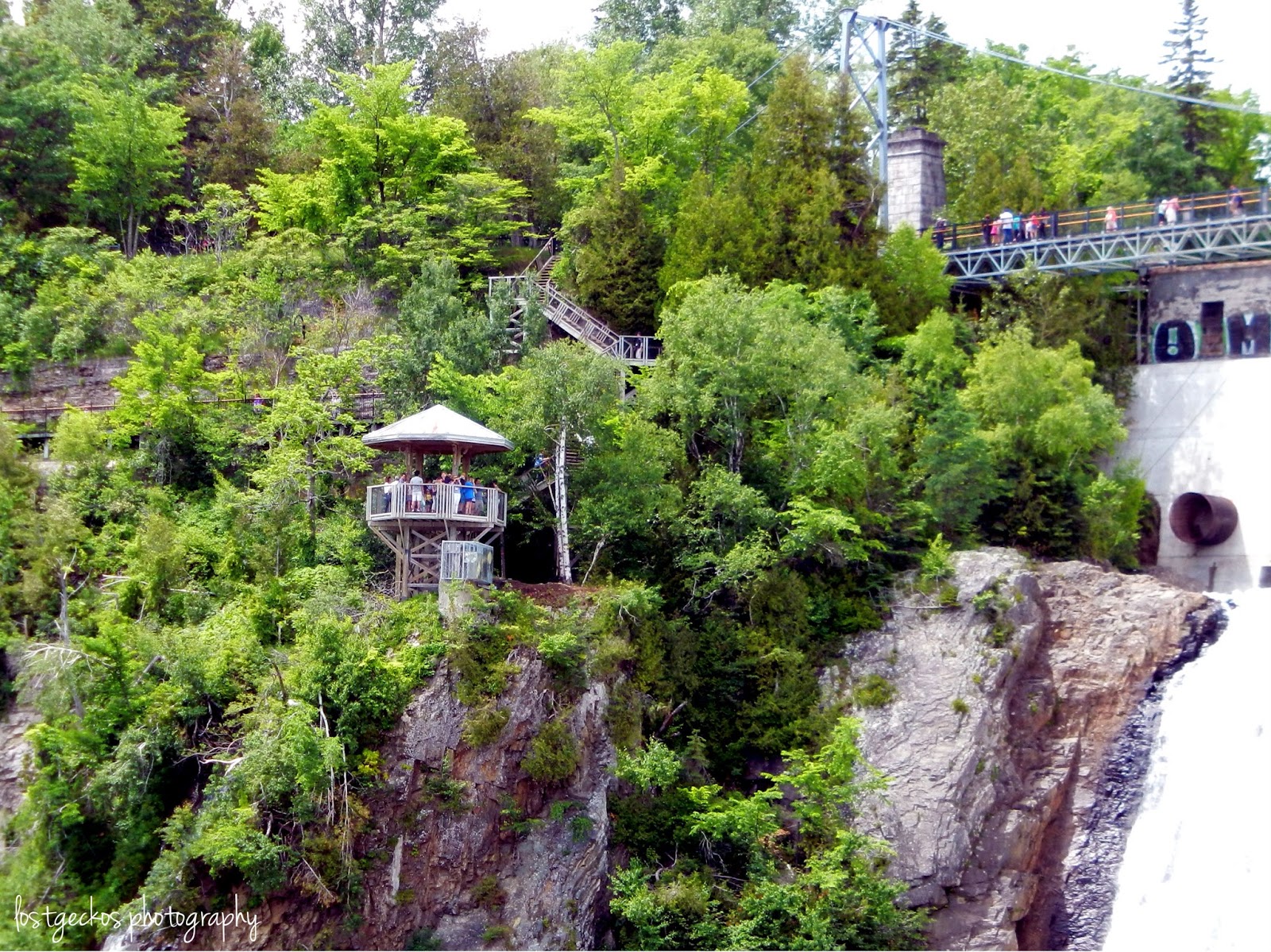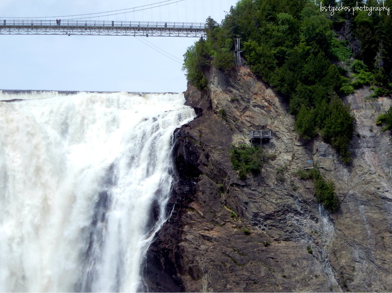 The view from the bridge is awesome. The falls flow into the St. Laurence River, and across the river, you can see the glimpses of the L’Île d’Orleans.