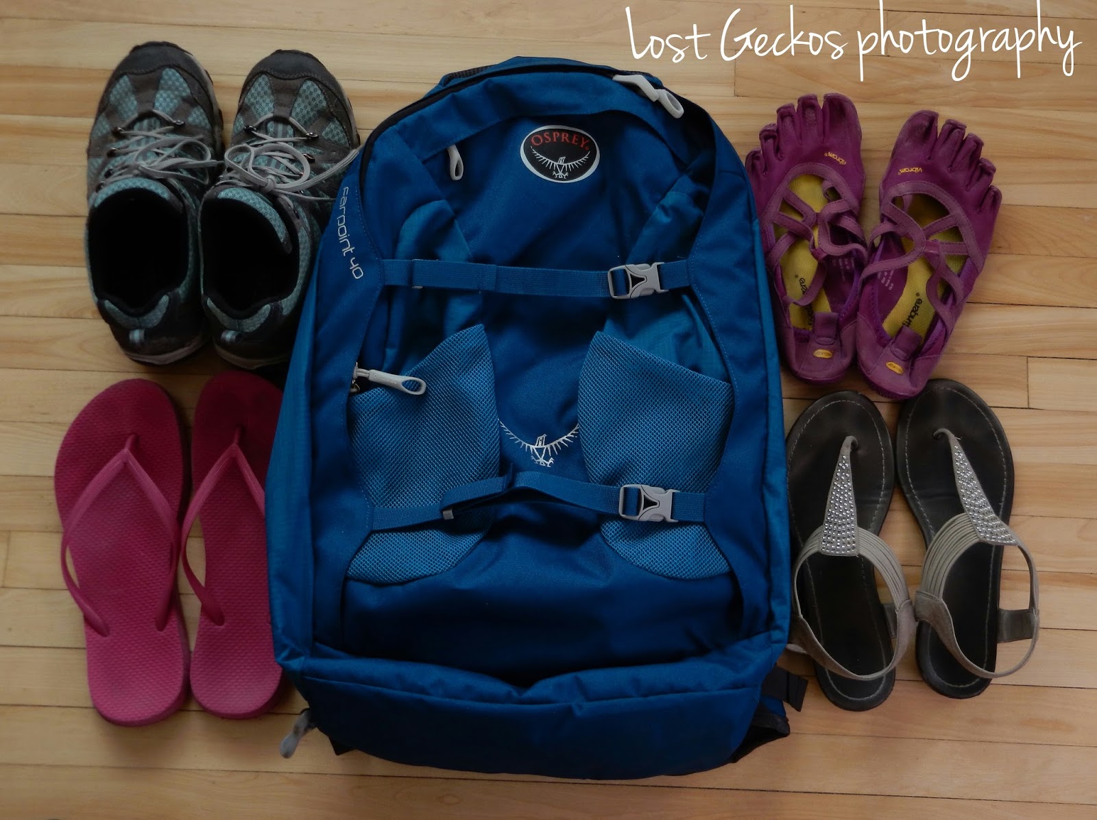 Shoes. Vibrams, trainers, flipflops, fancy sandals for a dressy option.
