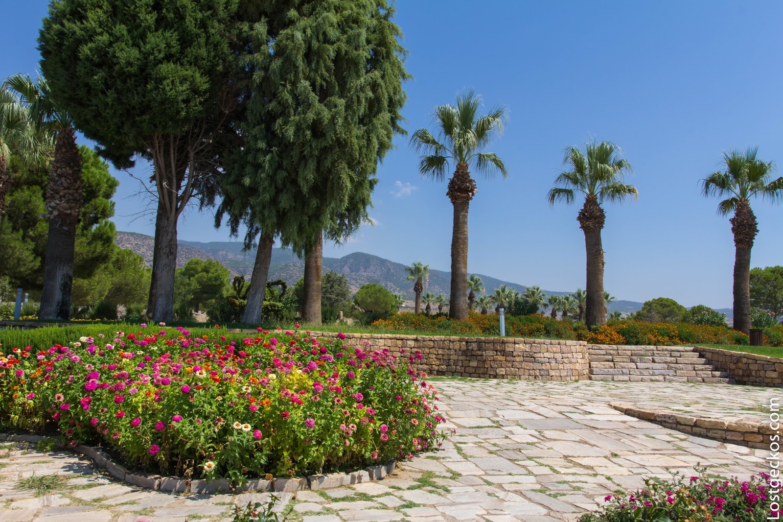 We were there on early September and the temperature was hot, especially Pamukkale is like a hill, so be on top of it almost feel like I was a feet closer to the scorching sun. The chalk cliffs and basins become very white, it was almost blinding. Although there are not much roof to hide from the sun, there is this beautiful green garden that provides you with natural shade in case you are cooking under the sun.