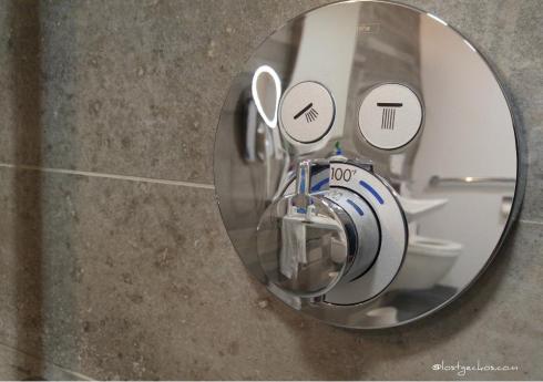 The spacious bathroom had two shower heads; one big one that gives the rain fall effect, and the detachable one. Both of them had led lights on them. I have mixed feelings about the placement of these lights, frankly. It does look cool and give a futuristic look to it, but on the other side, what if the seal between the light and the water has a leak? Direct electrocution??