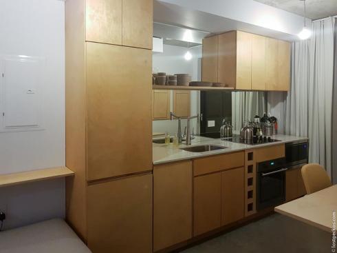 Then there is this fully equipped kitchen with oven, microwave, fridge, freezer, hotplate, and dishwasher. I could not only cook ramen, but also bake muffins if I wanted to (yes, they even provide muffin molds and complete range of utensil). Seriously, I could see myself live a daily life in this room. Especially it also has washing and drying machine, iron and ironing board, and plenty drawers to store your stuff.