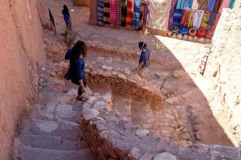 Ait Benhaddou was built onto the side of a hill, and on top of that hill stands a square building that once protected the most valued items and it served as a shared granary for the population of Ait Benhaddou. This hill top was also the last line of defense of the city, where the residents could retreat to when the enemy managed to penetrate the tall walls. This ancient city is packed tight with houses and narrow maze-like pathways that often lead into steep staircases.